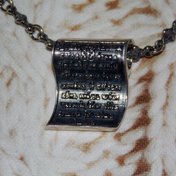 Небольшая серебряная подвеска с молитвой Богоматери. Эта молитва считается одной из самых сильных, потому что Церковь ставить Божью Матерь выше всех ангелов, всех пророков, всех святых. Это молитву читают в сложных и, казалось бы, безнадежных ситуациях. И, помощь приходит!
