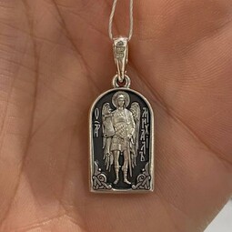 На обратной стороне изображен Архангел Михаил, предводитель небесного воинства, архангел, оберегающий души от любого проявления зла.