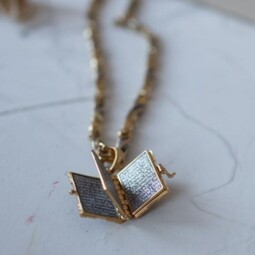 Изящный складень - молитвенник, выполненный из серебра и украшенный позолоченными элементами на обложке.  На лицевой части обложки помещен древнейший знак Христа - Хризма. Он состоит из первых двух букв его имени, которые дополнены первой и последней буквами греческого алфавита. Это означает то, что Господь Бог будет сопровождать каждого человека с рождения до последнего вздоха. Внутри – «Псалом 90». Считается, что сама молитва может быть мощной защитой. Ее читают при опасности, в скорби, при жизненных трудностях. В древние времена  русские солдаты даже переписывали Псалом от  руки и зашивали в одежду.