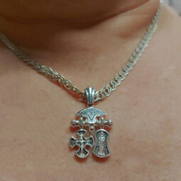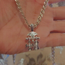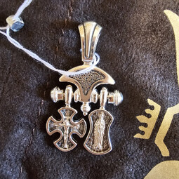Вторая часть - образок с иконами Валаамской иконы Божией Матери впереди, и Ангела, который охраняет человека, на нательной стороне. Считается, что это защитит от недугов и будет охранять душу человека.
