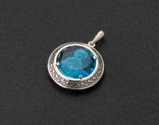 Православный образок из серебра 925 пробы с кварцем в центре. На нем находится изображение Ксении Петербургской. Она  одна из почитаемых святых за свои чудеса и терпение. К святой обращаются со своими нуждами, просьбами о помощи и заступничестве от бед. Ей молятся с просьбами укрепить семью или найти достойного спутника для жизни.  Вероятно потому, что при жизни любовь Ксении к своему мужу была настолько велика, что теперь ее хватает на многих.