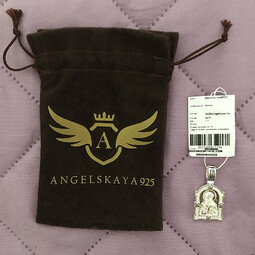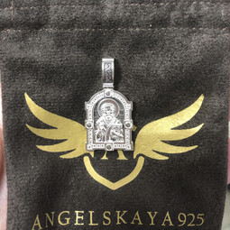 На лицевой части этого серебряного образка  изображен Николай Чудотворец. Он один из самых почитаемых святых на Руси. У него просят защиты от болезней, помощи в путешествии, учебе и в поиске достойного супруга. Контур обрамляет широкая полоса с узором, которая дополняет образок.