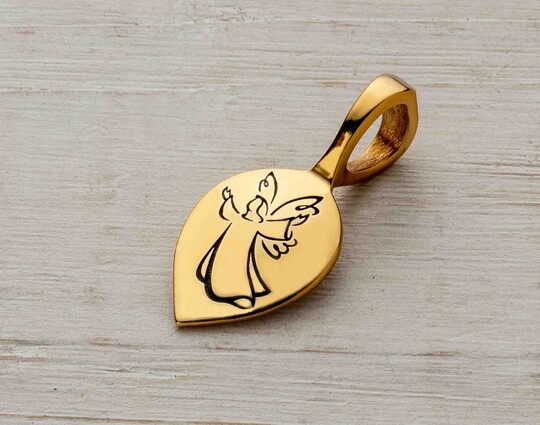 На поверхности изящной подвески  линиями изображен Ангел - Хранитель. Общая композиция с позолотой создает легкий и чистый эффект.