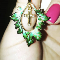 Особенная, экстравагантная подвеска. Выглядит не совсем как религиозное украшение, но в то же время так и есть. Маленький крестик в лепестке присутствует. Спасибо огромное за такое качество)