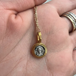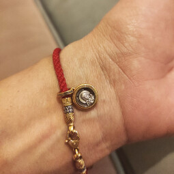На образке из серебра с позолотой изображена Святая Пелагея. Она оберегает от лицемерия и козней, наговоров и сплетен. Просящим она дает душевное равновесие, мир и покой. Оберегает от бед, напастей и неудач.