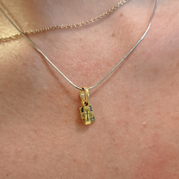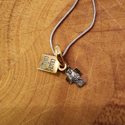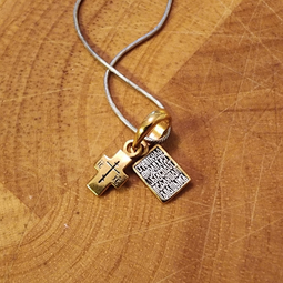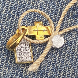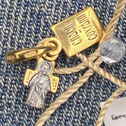 Миниатюрная подвеска выполнена из двух частей. На одной из них, в форме креста, находится образ Святителя Николая. Он считается покровителем детей, путешественников и всех, кого застала несправедливость. Он помогает обрести семейное счастье.