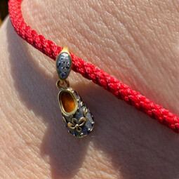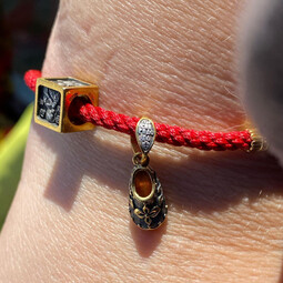 Миниатюрная подвеска выполнена в виде башмачка. Считается, что он принадлежит святому Спиридону Тримифунтскому. Этот человек никогда никому не отказывал в помощи. Его жизнь была наполнена чудотворением, бескорыстной помощью нуждающимся и верой в Иисуса Христа.