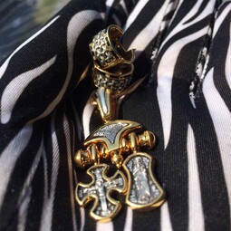 Православные серьги из серебра | 20_005 | Серебро 925 пробы с позолотой, эмаль, фианиты