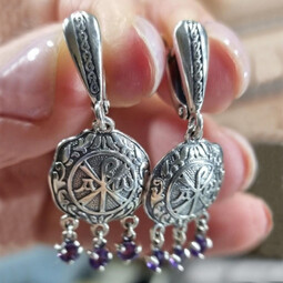Серьги с православным символом Хризма | b_s_078_1_ametist | Серебро 925 пробы