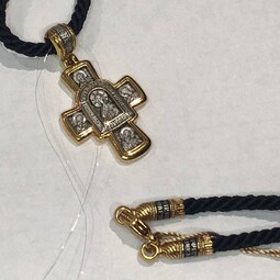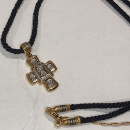 На его концевиках - специальные серебряные с позолотой зажимы в форме куполов. На них написаны слова – обращения к Богу. Замком служит позолоченный карабин.
