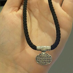 К гайтану прикреплена подвеска из серебра со словами первых строк из Псалма 90 «Живый в помощи Вышняго». Его читают в трудные минуты для защиты и помощи.